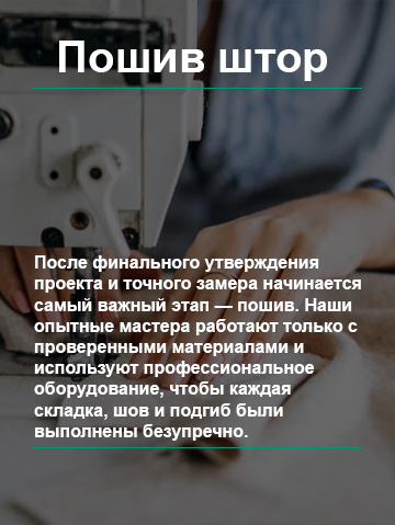 Обратился за комплексным решением — от замера до навески. Всё сделали чётко по срокам, без задержек. Ткани предложили именно те, что подходили к стилю гостиной. Шторы сидят идеально, даже складки ложатся ровно. Рекомендую!